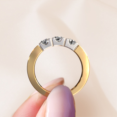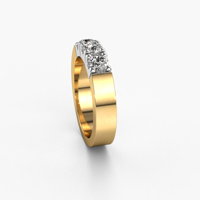 This extraordinary ring is called Dana 3. This type of ring is known as a memoire ring, because its gemstones are set in a continuous line. This makes it easy to combine with other rings. The band of this 14 Carat gold ring is set in a combination of zirconia and lab-grown diamond 4 mm. You can easily choose the combination you prefer online. As you can see, a single zirconia is set in this single alliance gold ring. The memoire ring represents collaboration. And that is precisely what these gemstones do, collaborate. Together they add a beautiful effect to the band of a modern ring! Such a meaningful ring, wouldn't you agree? All of our hand selected cz-stones are positioned by hand by our expert goldsmith. It's a precise task, which can only be completed successfully through the combination of pure craftsmanship and usage of the latest techniques which give it an optimal effect. To create a perfect reflection of light, all the gemstones have to be perfectly aligned in the same way. During manufacturing, the expert goldsmith will therefore monitor the reflection of light constantly to check whether the cz-stones are aligned properly. This requires a skilled hand and a lot of patience but then the end product will be a true piece of art. And that is our mission!After receiving your order, our goldsmiths will passionately start the creative process of making your ring in our own studio. Because we don't have a big stockpile, these costs will not be passed on to you. Our pricing is proof of that! We offer top quality jewels at lowest price, guaranteed.Our talented designers add new designs to our online collection daily. Together they create a diverse collection of the finest jewelry. If you prefer to make a ring according your own design, please feel free to request a quote. We will make you an amazing offer, based on quality and price.To make it easier for you, we offer a 30 day return policy. Check our terms and conditions.