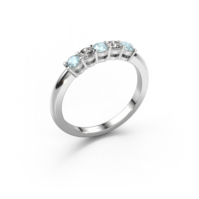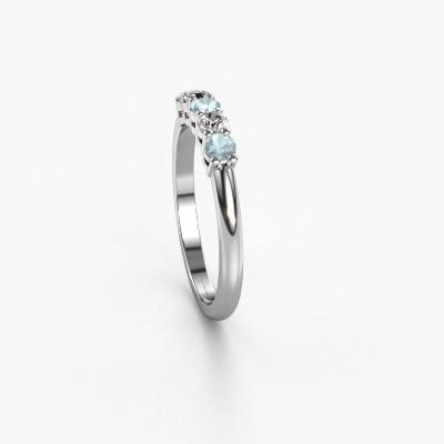 This extraordinary ring is called Michelle 5. This type of ring is known as a memoire ring, because its gemstones are set in a continuous line. This makes it easy to combine with other rings. The band of this platinum ring is set in a combination of aquamarine and lab-grown diamond 3 mm. You can easily choose the combination you prefer online. As you can see, a single aquamarine is set in this single alliance platinum ring. The memoire ring represents collaboration. And that is precisely what these gemstones do, collaborate. Together they add a beautiful effect to the band of a classic ring! Such a meaningful ring, wouldn't you agree? All of our hand selected aquamarine are positioned by hand by our expert goldsmith. It's a precise task, which can only be completed successfully through the combination of pure craftsmanship and usage of the latest techniques which give it an optimal effect. To create a perfect reflection of light, all the gemstones have to be perfectly aligned in the same way. During manufacturing, the expert goldsmith will therefore monitor the reflection of light constantly to check whether the aquamarine are aligned properly. This requires a skilled hand and a lot of patience but then the end product will be a true piece of art. And that is our mission!Are you on a budget? Please feel free to contact us, so we can go discuss your options. We offer our rings at guaranteed best price, because we make them to order. You won't find such a price anywhere else!