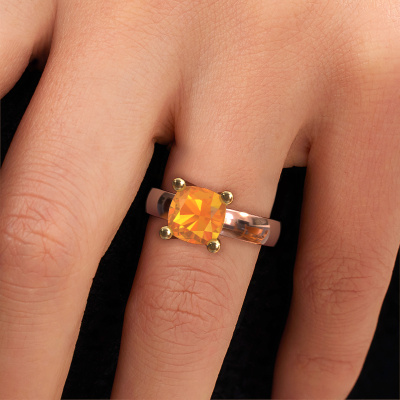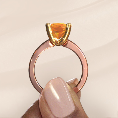 Are you looking for a birthstones ring with an eye-catching single gemstone? How do you like this Clelia CUS ring? This rose gold Clelia CUS ring is set with a beautiful 8 mm cushion citrin. The citrin is carefully selected by our citrin suppliers. Subsequently, these gemstones are then set by our goldsmith according to ancient tradition. The ring will then be polished to perfection creating a unique ring with a stunning citrin. Created especially for you. The best part of this birthstones ring is that you can customize it to your own liking. Your style, your choice, your ring. On top of that, your modern rose gold ring will be made by hand with eco-friendly materials! Please feel free to easily customize the ring, using our online tool.Because we design and deliver our own rings, we can offer you a ring at a price you won't find anywhere else. A ring is made to order, which helps prevent excess supplies, so we can make you a great price offer. We understand it feels risky, buying your ring online, but we will gladly assist in the designing process, taking your budget into consideration.To make it easier for you, we offer a 30 day return policy. Check our terms and conditions.