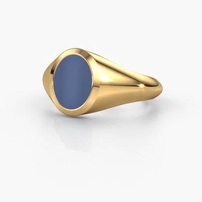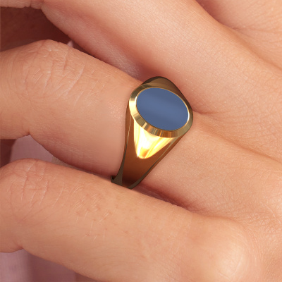 This gold women´s signet ring is a true work of art! This is our beautiful Evon 1 signet ring and it is set with a oval shape blue sardonyx. In our crafting studio, we use a combination of the latest techniques and ancient traditional craftsmanship, so we are able to create a detailed perfect signet ring. Our expert goldsmiths are fascinated by signet rings. The signet ring can be engraved with initials or a family weapon. Signet rings with family weapons can be handed down from generation to generation and that usually is the case. On top of that, a signet ring is a beautiful, classy piece of jewelry which is trending once more. More than one reason to start or extend the tradition. Please browse our online database for more options on engravings. You can find the departments of our education center at the bottom of this page. Our goldsmiths passionately create your customized signet ring to your liking with the utmost care. The gold signet ring, as shown here, can be customized using our online tool. Feel free to ask our jewel designers for assistance if you want changes made which are unavailable in our online tool. We are happy to answer your questions.After receiving your order, our goldsmiths will passionately start the creative process of making your ring in our own studio. Because we don't have a big stockpile, these costs will not be passed on to you. Our pricing is proof of that! We offer top quality jewels at lowest price, guaranteed.To make it easier for you, we offer a 30 day return policy. Check our terms and conditions.