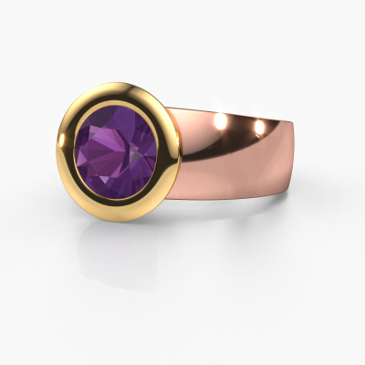 Are you looking for a elegant ring with an eye-catching single gemstone? How do you like this Maxime ring? This rose gold Maxime ring is set with a beautiful 8 mm round amethyst. The amethyst is carefully selected by our amethysten suppliers. Subsequently, these gemstones are then set by our goldsmith according to ancient tradition. The ring will then be polished to perfection creating a unique ring with a stunning amethyst. Created especially for you. How do you like this modern rose gold ring? Simply customize this Maxime ring, using our online tool. Subsequently, your personal elegant Maxime ring will be made by hand by our goldsmiths. Precious metals and gemstones can be customized to your liking. Do you have specific preferences which are unavailable in our online tool? Please feel free to contact us. We will customize your personal modern ring to your liking.Are you on a budget? Please feel free to contact us, so we can go discuss your options. We offer our rings at guaranteed best price, because we make them to order. You won't find such a price anywhere else!To make it easier for you, we offer a 30 day return policy. Check our terms and conditions.