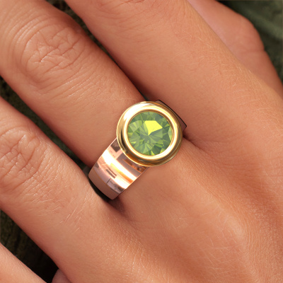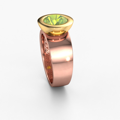 Are you looking for a elegant ring with an eye-catching single gemstone? How do you like this Maxime ring? This rose gold Maxime ring is set with a beautiful 8 mm round peridot. The peridot is carefully selected by our peridot suppliers. Subsequently, these gemstones are then set by our goldsmith according to ancient tradition. The ring will then be polished to perfection creating a unique ring with a stunning peridot. Created especially for you. How do you like this modern rose gold ring? Simply customize this Maxime ring, using our online tool. Subsequently, your personal elegant Maxime ring will be made by hand by our goldsmiths. Precious metals and gemstones can be customized to your liking. Do you have specific preferences which are unavailable in our online tool? Please feel free to contact us. We will customize your personal modern ring to your liking.Are you on a budget? Please feel free to contact us, so we can go discuss your options. We offer our rings at guaranteed best price, because we make them to order. You won't find such a price anywhere else!To make it easier for you, we offer a 30 day return policy. Check our terms and conditions.