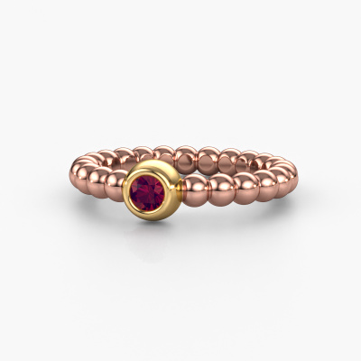 This Dini stackable ring in 14 Carat rose gold is set with rhodolite. This rose gold stacked Dini ring is the perfect addition to your ring collection! As the name suggests, it is a ring which can be combined on one finger with another ring. It gives you the opportunity to create your own style. A stacked ring usually represents a certain memory of someone special or a memorable moment. It is common to combine a stacked ring, representing an anniversary, with a wedding ring. But this orbs ring, combined with your other rings, also makes a classy fashion item. The best part of this orbs stackable ring is that you can customize it to your own liking. Your style, your choice, your stackable ring. On top of that, your trendy rose gold stackable ring will be made by hand with eco-friendly materials! Please feel free to easily customize the ring, using our online tool.After receiving your order, our goldsmiths will passionately start the creative process of making your ring in our own studio. Because we don't have a big stockpile, these costs will not be passed on to you. Our pricing is proof of that! We offer top quality jewels at lowest price, guaranteed.To make it easier for you, we offer a 30 day return policy. Check our terms and conditions.