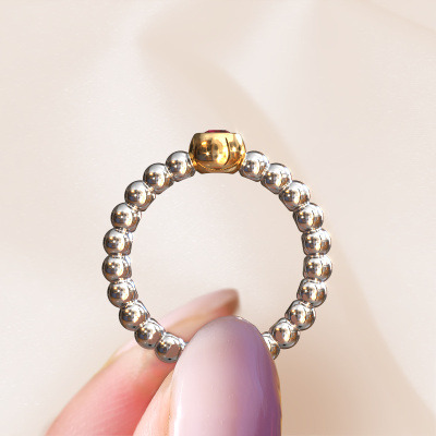 This Dini stackable ring in 14 Carat white gold is set with ruby. This white gold stacked Dini ring is the perfect addition to your ring collection! As the name suggests, it is a ring which can be combined on one finger with another ring. It gives you the opportunity to create your own style. A stacked ring usually represents a certain memory of someone special or a memorable moment. It is common to combine a stacked ring, representing an anniversary, with a wedding ring. But this orbs ring, combined with your other rings, also makes a classy fashion item. The best part of this orbs stackable ring is that you can customize it to your own liking. Your style, your choice, your stackable ring. On top of that, your trendy white gold stackable ring will be made by hand with eco-friendly materials! Please feel free to easily customize the ring, using our online tool.After receiving your order, our goldsmiths will passionately start the creative process of making your ring in our own studio. Because we don't have a big stockpile, these costs will not be passed on to you. Our pricing is proof of that! We offer top quality jewels at lowest price, guaranteed.To make it easier for you, we offer a 30 day return policy. Check our terms and conditions.