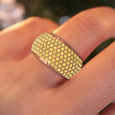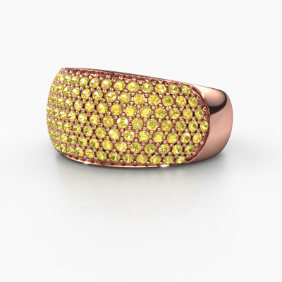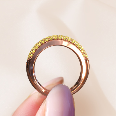 This pave set ring is called Kati. This 14 Carat rose gold ring is set with yellow sapphire 1.3 mm. The band of this rose gold ring is set with rows of yellow sapphire which seem to have no beginning nor end. Our goldsmith carefully selects the gemstones and sets them with the utmost precision. For maximum shine, the yellow sapphire have to align perfectly. While artfully crafting and polishing the jewelry, light fall is constantly monitored, until the expert goldsmith is satisfied with the result. Designed by you, created especially for you!The best part of this pavé set ring is that you can customize it to your own liking. Your style, your choice, your ring. On top of that, your exclusive rose gold ring will be made by hand with eco-friendly materials! Please feel free to easily customize the ring, using our online tool.After receiving your order, our goldsmiths will passionately start the creative process of making your ring in our own studio. Because we don't have a big stockpile, these costs will not be passed on to you. Our pricing is proof of that! We offer top quality jewels at lowest price, guaranteed.To make it easier for you, we offer a 30 day return policy. Check our terms and conditions.
