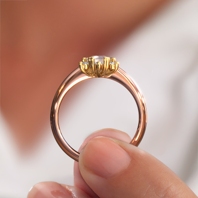 How would you describe your own style? Are you looking for something uniquely different? This cluster rose gold Liesbeth ring is astonishing! Simply customize to your or her own liking. This ring is set with morganite champagne. These morganite champagne have been carefully selected because your ring must be adorned with nothing but the most beautiful gemstone. Wouldn't you agree? Our expert goldsmith will create your ring in our own crafting studios, where the morganite champagne will be set with care. The ring will then be polished to perfection to give it that extra sparkle. It's a perfect ring for a woman of excellent taste!As soon as you finished designing your Liesbeth ring with our online tool, our goldsmiths will start their creative process of making your ring. This will be done with passion and care, according ancient crafting. On top of that, our jewels are made of eco-friendly materials. Simply customize online with our online tool, if you want any changes made. If you want specific changes made to your Liesbeth ring, that are unavailable in our online tool, please feel free to contact our expert designers.By using our modern techniques, we can design and customize the finest quality jewels with the utmost care for you. Our rings are always priced 30 percent lower than other jewelers. We make rings to order, so we don't have to maintain a large stock. If you have a certain budget, we are more than happy to advice you accordingly.To make it easier for you, we offer a 30 day return policy. Check our terms and conditions.