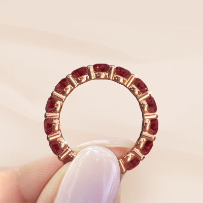 This exclusive rose gold Heddy rnd 4.2 ring is a true work of art! This ring is made of 14 Carat rose gold and is set with 4.2 mm round ruby. The smallest ornaments are crafted by our goldsmith with a lot of patience and great passion. In order to create this ring with great precision, this craft requires a keen eye and a skillful hand. A challenge which ignites a fire in our expert goldsmiths. The exquisite ruby are set in a way that their unique qualities are strengthened. This gives the ring an even more glamorous appearance. The ring is unique by itself though, because of the natural birthstones we selected especially for this Heddy rnd 4.2 ring. And by choosing the precious metal yourself, you create a unique ring. The best part of this eternity ring is that you can customize it to your own liking. Your style, your choice, your ring. On top of that, your exclusive rose gold ring will be made by hand with eco-friendly materials! Please feel free to easily customize the ring, using our online tool.After receiving your order, our goldsmiths will start the creative process of making your Heddy rnd 4.2 ring. We don't keep stock. This is advantageous because these costs will not be passed on to you. Therefore, we can offer jewelry at exceptionally low prices.To make it easier for you, we offer a 30 day return policy. Check our terms and conditions.