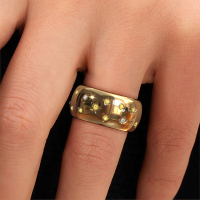 How would you describe your own style? Are you looking for something uniquely different? This royal gold Sasha 1 ring is astonishing! Simply customize to your or her own liking. This ring is set with zirconia. These cz-stones have been carefully selected because your ring must be adorned with nothing but the most beautiful gemstone. Wouldn't you agree? Our expert goldsmith will create your ring in our own crafting studios, where the zirconia will be set with care. The ring will then be polished to perfection to give it that extra sparkle. It's a perfect ring for a woman of excellent taste!Customize your own royalSasha 1 ring, which will then be created by our goldsmiths with great passion. Do you prefer a different option than is shown here in the gold Sasha 1 ring? Then our online tools offers various options. Feel free to ask us for help if you are unable to succeed. We are happy to answer your questions!By using a combination of the latest modern techniques, combined with ancient crafting, we can make all our rings in our own studio. Each jewel is made to order. This is advantageous because we can offer you a price you won't find anywhere else.To make it easier for you, we offer a 30 day return policy. Check our terms and conditions.