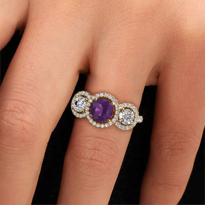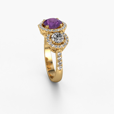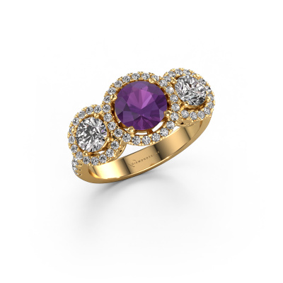 This exclusive gold Lacie ring is a true work of art! This ring is made of 14 Carat gold and is set with 6.5 mm round amethyst. The smallest ornaments are crafted by our goldsmith with a lot of patience and great passion. In order to create this ring with great precision, this craft requires a keen eye and a skillful hand. A challenge which ignites a fire in our expert goldsmiths. The exquisite amethysten are set in a way that their unique qualities are strengthened. This gives the ring an even more glamorous appearance. The ring is unique by itself though, because of the natural birthstones we selected especially for this Lacie ring. And by choosing the precious metal yourself, you create a unique ring. Customize your own specialLacie ring, which will then be created by our goldsmiths with great passion. Do you prefer a different option than is shown here in the gold Lacie ring? Then our online tools offers various options. Feel free to ask us for help if you are unable to succeed. We are happy to answer your questions!Because we design and deliver our own rings, we can offer you a ring at a price you won't find anywhere else. A ring is made to order, which helps prevent excess supplies, so we can make you a great price offer. We understand it feels risky, buying your ring online, but we will gladly assist in the designing process, taking your budget into consideration.To make it easier for you, we offer a 30 day return policy. Check our terms and conditions.