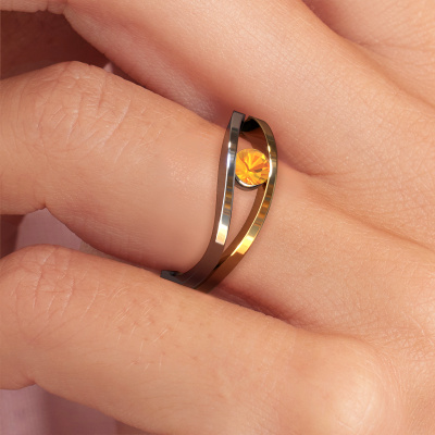 This ring called Sigrid 1 is made of 14 Carat white gold and is set with citrin. Are you in the market for a unique white gold ring with a modern twist? Then this ring might suit you. Simply customize to your or her liking. It suits the contemporary modern woman. This twist ring is set with beautiful citrin. This has been carefully selected. Because your ring must be adorned with nothing but the most stunning gemstone. Our expert goldsmith will create your ring in our own studio, where the citrin will be set with great care. The ring will then be polished to perfection to create a stunning ring. By using our modern techniques, we can design and customize the finest quality jewels with the utmost care for you. Our rings are always priced 30 percent lower than other jewelers. We make rings to order, so we don't have to maintain a large stock. If you have a certain budget, we are more than happy to advice you accordingly.Our team of talented, passionate designers add new ring designs to our online collection daily. Our objective in doing so, is to be able to offer you a wide variety of jewels. Please feel free to request a quote if you have specific wishes for your ring. We guarantee to make you an offer you can't refuse.To make it easier for you, we offer a 30 day return policy. Check our terms and conditions.