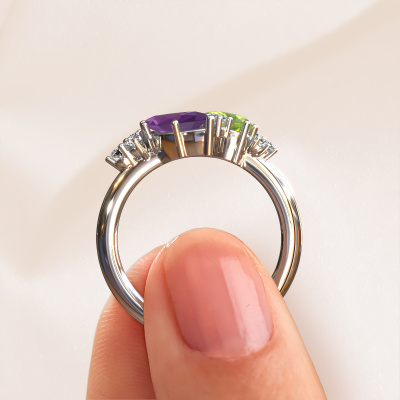How would you describe your own style? Are you looking for something uniquely different? This special white gold Amanda ring is astonishing! Simply customize to your or her own liking. This ring is set with amethyst. These amethysten have been carefully selected because your ring must be adorned with nothing but the most beautiful gemstone. Wouldn't you agree? Our expert goldsmith will create your ring in our own crafting studios, where the amethyst will be set with care. The ring will then be polished to perfection to give it that extra sparkle. It's a perfect ring for a woman of excellent taste!Customize your own specialAmanda ring, which will then be created by our goldsmiths with great passion. Do you prefer a different option than is shown here in the white gold Amanda ring? Then our online tools offers various options. Feel free to ask us for help if you are unable to succeed. We are happy to answer your questions!Because we design and deliver our own rings, we can offer you a ring at a price you won't find anywhere else. A ring is made to order, which helps prevent excess supplies, so we can make you a great price offer. We understand it feels risky, buying your ring online, but we will gladly assist in the designing process, taking your budget into consideration.To make it easier for you, we offer a 30 day return policy. Check our terms and conditions.