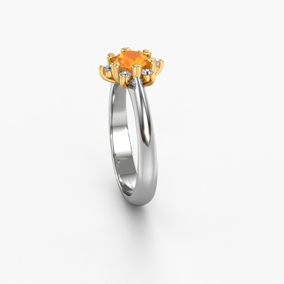 How would you describe your own style? Are you looking for something uniquely different? This cluster white gold Liesbeth ring is astonishing! Simply customize to your or her own liking. This ring is set with citrin. These citrin have been carefully selected because your ring must be adorned with nothing but the most beautiful gemstone. Wouldn't you agree? Our expert goldsmith will create your ring in our own crafting studios, where the citrin will be set with care. The ring will then be polished to perfection to give it that extra sparkle. It's a perfect ring for a woman of excellent taste!As soon as you finished designing your Liesbeth ring with our online tool, our goldsmiths will start their creative process of making your ring. This will be done with passion and care, according ancient crafting. On top of that, our jewels are made of eco-friendly materials. Simply customize online with our online tool, if you want any changes made. If you want specific changes made to your Liesbeth ring, that are unavailable in our online tool, please feel free to contact our expert designers.By using our modern techniques, we can design and customize the finest quality jewels with the utmost care for you. Our rings are always priced 30 percent lower than other jewelers. We make rings to order, so we don't have to maintain a large stock. If you have a certain budget, we are more than happy to advice you accordingly.To make it easier for you, we offer a 30 day return policy. Check our terms and conditions.