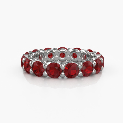 This exclusive white gold Heddy rnd 4.2 ring is a true work of art! This ring is made of 14 Carat white gold and is set with 4.2 mm round ruby. The smallest ornaments are crafted by our goldsmith with a lot of patience and great passion. In order to create this ring with great precision, this craft requires a keen eye and a skillful hand. A challenge which ignites a fire in our expert goldsmiths. The exquisite ruby are set in a way that their unique qualities are strengthened. This gives the ring an even more glamorous appearance. The ring is unique by itself though, because of the natural birthstones we selected especially for this Heddy rnd 4.2 ring. And by choosing the precious metal yourself, you create a unique ring. The best part of this eternity ring is that you can customize it to your own liking. Your style, your choice, your ring. On top of that, your exclusive white gold ring will be made by hand with eco-friendly materials! Please feel free to easily customize the ring, using our online tool.After receiving your order, our goldsmiths will start the creative process of making your Heddy rnd 4.2 ring. We don't keep stock. This is advantageous because these costs will not be passed on to you. Therefore, we can offer jewelry at exceptionally low prices.To make it easier for you, we offer a 30 day return policy. Check our terms and conditions.