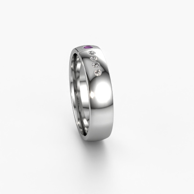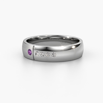 What a perfect combination of two different precious metals. They seem to reinforce each other in the modern design of this ring! Our goldsmith would be honored to create a unique ring for you, customized to your liking. Each ladies wedding ring we offer is artfully crafted by hand in our own artisan studio. That makes it possible for us to turn modern into reality and helps create your own personal ring, customized to your style. This modern WH1101L25SAMP ladies wedding ring is set with round amethyst, is ±0.20 in (5 mm) wide and has a mat/shiny finish.