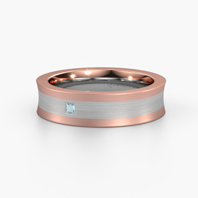 What a perfect combination of two different precious metals. They seem to reinforce each other in the fashionable design of this ring! Our goldsmith would be honored to create a unique ring for you, customized to your liking. Each ladies wedding ring we offer is artfully crafted by hand in our own artisan studio. That makes it possible for us to turn fashionable into reality and helps create your own personal ring, customized to your style. This fashionable WH2238L2 ladies wedding ring is set with princess aquamarine, is ±0.24 in (6 mm) wide and has a matte finish. You can choose the combination of precious metals of your preference in our online tool. Anything goes! It is wise to browse through the characteristics of each different precious metal. For example, gold and silver are softer metals. Carat is determined by the amount of added extra metals. If the goldsmith doesn't add a lot, carat is higher and the wedding ring will be softer. If he adds more metals, the jewel has a lower amount of carat. A softer precious metal can still be used for your fashionable wedding ring! If you prefer a precious metal which will last a lifetime, we recommend platinum. This is the most solid and durable metal our goldsmith uses.Be inspired by our designs, and adjust this wedding ring to your own personal taste: wider or smaller, shiny or matte? No problem! Even if you have ideas of your own for special wedding rings, our jewelry designers are lined up to help you design the ring of your dreams. don't hesitate to contact us!Because we design and deliver our own wedding rings, we can offer you wedding rings at a price you won't find anywhere else. A ring is made to order, which helps prevent excess supplies, so we can make you a great price offer.To make it easier for you, we offer a 30 day return policy. Check our terms and conditions.