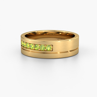 A truly stylish 14 Carat traditional wedding ring! This exquisite ladies wedding ring, as shown above, is set with round peridot. Our goldsmiths make each gold wedding ring by hand in our own artisan studio and because of that, the peridot are set with the utmost precision. This causes light to reflect evenly from every angle of the peridot. The width of this traditional WH0312L16AM wedding ring is ±0.24 in (6 mm) and the finish is mat. After ordering your wedding ring, our goldsmith will start creating your wedding ring immediately. Did you know we use the latest modern techniques, combined with ancient craftsmanship? This helps to create a 3D design of your jewel. You can order a dummy ring, if you please. This way you can check if the wedding ring meets your standard. Then, our goldsmith, who strives for perfection, will create your ring in our own artisan studio completely by hand. We feel passionate creating a unique ring each time. One which is finished to perfection. In the end, you get a wedding ring which matches your wishes.By the way, you can be inspired by this wedding ring and have it further adjusted to your taste. Do you prefer a smaller band or a wider one? Do you prefer a shiny ring or a matte one? Anything is possible. Also, if you have an idea of your own for extraordinary wedding rings, or if you have seen a beautiful set somewhere else that you really like and would like to have adjusted to your personal taste: no problem! don't hesitate to contact us. Our designers will gladly discuss your possibilities with you!After receiving your order, our goldsmiths will start the creative process of making your wedding rings. We don't keep stock. This is advantageous because these costs will not be passed on to you. Therefore, our quality wedding rings are always priced 30 percent lower than those of other jewelers.To make it easier for you, we offer a 30 day return policy. Check our terms and conditions.