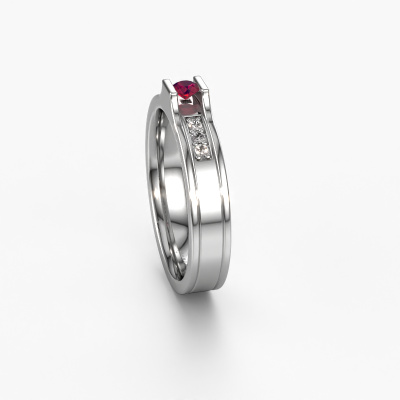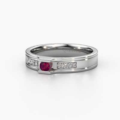 A unique two-tone platinum ladies wedding ring, designed by you, and then artfully crafted by our goldsmith in our own artisan studio! A beautiful symbol, reflecting your love, which you carry with you for a lifetime! Each ring we offer is artfully forged by hand in our own crafting studio. This makes it possible for us to create you a ring which is customized to your liking, completely shiny your style. This modern WH2110L14A wedding ring is set with rhodolite, is ±0.16 in (4 mm) wide and has a shiny finish. The jewel designer, member of a specialized team, will make a graphic 3D design of your wedding ring. If it pleases you, you can also order a ring dummy so you can try it on and see your ring before creation. Subsequently, our goldsmith will create your unique wedding ring with great care in our own crafting studio. A meticulous job, because both creating as well as finishing your ring requires a keen eye. And that is what makes our craft special. Your unique wedding ring is the result of true passionate craftsmanship!Do you have specific wishes? Like a shiny ring, or a matte one? A wider band, or a smaller one? The possibilities of this wedding ring are endless. Be sure to contact our designers to adjust your ring to your personal taste. Did you see a ring somewhere, or do you have some special ideas of your own? Then don't hesitate to contact our designers and discuss your ideas for your own set of beautiful wedding rings. We are up for the challenge of creating the ring exactly the way you want it!By combining our modern techniques with ancient crafting, we can design and customize the finest quality jewels with the utmost care for you at the best price. Our wedding rings are always priced 30% lower than those of other jewelers. We make wedding rings to order so we don't have to maintain a large stock.To make it easier for you, we offer a 30 day return policy. Check our terms and conditions.