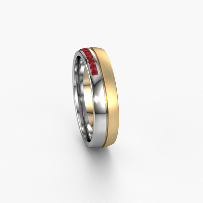 A unique two-tone gold ladies wedding ring, designed by you, and then artfully crafted by our goldsmith in our own artisan studio! A beautiful symbol, reflecting your love, which you carry with you for a lifetime! Each ring we offer is artfully forged by hand in our own crafting studio. This makes it possible for us to create you a ring which is customized to your liking, completely mat/shiny your style. This fashionable WH0209L25APM wedding ring is set with ruby, is ±0.20 in (5 mm) wide and has a mat/shiny finish. After ordering your wedding ring, our goldsmith will start creating your wedding ring immediately. Did you know we use the latest modern techniques, combined with ancient craftsmanship? This helps to create a 3D design of your jewel. You can order a dummy ring, if you please. This way you can check if the wedding ring meets your standard. Then, our goldsmith, who strives for perfection, will create your ring in our own artisan studio completely by hand. We feel passionate creating a unique ring each time. One which is finished to perfection. In the end, you get a wedding ring which matches your wishes.Do you have special preferences regarding your wedding ring? For instance, a smaller or a wider band? Or perhaps a shiny or a matte ring? There are numerous variations possible. You can always discuss the possibilities with our jewelry designers. If you have certain wedding rings in mind, our designers will gladly help by drawing the rings of your dreams. Be sure to contact us!After receiving your order, our goldsmiths will passionately start the creative process of making your wedding rings in our own artisan studio. Because we do not maintain a large stockpile, we can offer our jewelry at a lower price than other jewelers. Our pricing is proof of that! We offer top quality jewels at lowest price, guaranteed.To make it easier for you, we offer a 30 day return policy. Check our terms and conditions.