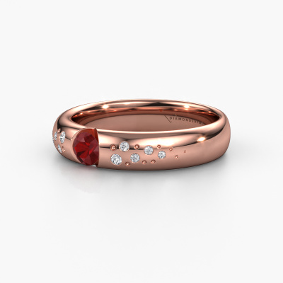 This modern ladies wedding ring is a melting pot of ancient craftsmanship, love, passion and the latest techniques. It requires a keen eye, patience and a skillful hand to create this rose gold wedding ring to perfection. And perfection is what our goldsmiths strive for! This way, you create an exclusive ring, which is customized to your liking and made by hand in our own artisan studio. This modern WH2104L34A wedding ring is set with ruby 4 mm, is ±0.18 in (4,5 mm) wide and has a shiny finish. Gold represents love and therefore our goldsmith loves using it in the design of your modern wedding ring. We are a proud member of the Responsible Jewellery Council. This means we only use eco-friendly gold. Something we take great pride in, obviously. It is also possible to use your own gold in the design of your wedding ring. Each jewel is made by hand in our own artisan studio so we can offer this option. This gives you the opportunity to add an extra personal touch to your ring. A ring with its own history!Do you have specific wishes? Like a shiny ring, or a matte one? A wider band, or a smaller one? The possibilities of this wedding ring are endless. Be sure to contact our designers to adjust your ring to your personal taste. Did you see a ring somewhere, or do you have some special ideas of your own? Then don't hesitate to contact our designers and discuss your ideas for your own set of beautiful wedding rings. We are up for the challenge of creating the ring exactly the way you want it!Because we design our wedding rings ourselves, and deliver it directly to you, we can offer you wedding rings at a price you won't find anywhere else. Our rings are made to order, which helps prevent excess supplies, so we can make you a great price offer.To make it easier for you, we offer a 30 day return policy. Check our terms and conditions.