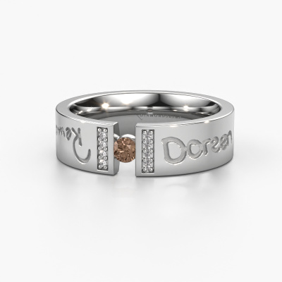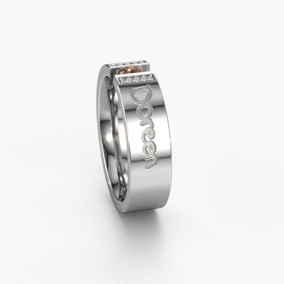 A unique wedding ring with brown diamond! What makes this ladies wedding ring WH2094L16C special, is that you can have it engraved with a special text, which has meaning to you. A word, a short phrase or part of the lyrics to a song. Whichever text is most meaningful to you. Memorialize it as an exquisite engravement on this modern wedding ring. This own Text ladies wedding ring has an ±0.24 in (6 mm) width. You can choose the combination of precious metals of your preference in our online tool. Anything goes! It is wise to browse through the characteristics of each different precious metal. For example, gold and silver are softer metals. Carat is determined by the amount of added extra metals. If the goldsmith doesn't add a lot, carat is higher and the wedding ring will be softer. If he adds more metals, the jewel has a lower amount of carat. A softer precious metal can still be used for your modern wedding ring! If you prefer a precious metal which will last a lifetime, we recommend platinum. This is the most solid and durable metal our goldsmith uses.This wedding ring can also serve as a source of inspiration. Would you like the ring to have a matte or shiny finish (at no additional cost), or would you prefer it to be wider or narrower? Anything is possible. Because there are countless variations, we can’t show everything on our website. Do you have an idea for beautiful wedding rings, or have you seen a stunning set of wedding rings elsewhere? Feel free to contact us; our designers are ready to assist you.By combining our modern techniques with ancient crafting, we can design and customize the finest quality jewels with the utmost care for you at the best price. Our wedding rings are always priced 30% lower than those of other jewelers. We make wedding rings to order so we don't have to maintain a large stock.To make it easier for you, we offer a 30 day return policy. Check our terms and conditions.