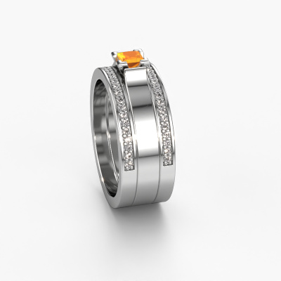 A truly stylish 14 Carat exclusive wedding ring! This exquisite ladies wedding ring, as shown above, is set with princess citrin. Our goldsmiths make each white gold wedding ring by hand in our own artisan studio and because of that, the citrin are set with the utmost precision. This causes light to reflect evenly from every angle of the citrin. The width of this exclusive WH2121L wedding ring is ±0.31 in (8 mm) and the finish is shiny. Choosing a wedding ring is not done on a whim. In the end, you want a ring that completely matches your style and preferences. A reflection of your love and relationship. A ring to last a lifetime. A symbol of all that unites you. Creating your dream ring is what gets us excited. This is artfully done by hand in our own crafting studio, so we can create your ring to perfection. The most rewarding job in the world!Do you have specific wishes? Like a shiny ring, or a matte one? A wider band, or a smaller one? The possibilities of this wedding ring are endless. Be sure to contact our designers to adjust your ring to your personal taste. Did you see a ring somewhere, or do you have some special ideas of your own? Then don't hesitate to contact our designers and discuss your ideas for your own set of beautiful wedding rings. We are up for the challenge of creating the ring exactly the way you want it!After receiving your order, our goldsmiths will start the creative process of making your wedding rings in our own crafting studio. We don't keep stock. This is advantageous because these costs will not be passed on to you. Therefore, we can offer the finest quality jewelry at exceptionally low prices.To make it easier for you, we offer a 30 day return policy. Check our terms and conditions.