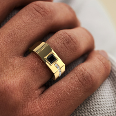 Dress to impress with this rectangular Robertus 1 men's ring, because with the right ring you make a strong personal statement. This Robertus 1 daring men's ring is shown in 14 Carat gold. If this doesn't suit your style, feel free to customize the precious metal to your liking. After all, you want a men's ring that matches your style. A ring that truly suits you. One saying: This is who I am!Customize your own daring Robertus 1 men's ring, which will then be created by our goldsmiths with great passion. Do you prefer a different option than is shown here in the gold Robertus 1 men's ring? Then our online tools offers various options. Feel free to ask us for help if you are unable to succeed. We are happy to answer your questions!New jewelry designs are added to our online collection daily. Our team of passionate designers strive to create extraordinary and diverse designs. Have you seen a ring you like? Please feel free to contact us. Based on a good price/ quality ratio, we will make you an offer you can't refuse!Are you on a budget? Please feel free to contact us, so we can go discuss your options. We offer our rings at guaranteed best price, because we make them to order. You won't find such a price anywhere else!To make it easier for you, we offer a 30 day return policy. Check our terms and conditions.