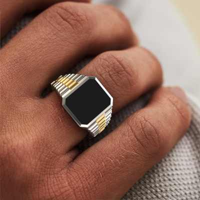 Everyone knows the design of this well-known watch brand. With two colors of white gold links, this flat 14 Carat white gold Brent 2 signet ring, is perfectly suited for trendy, successful men. A man who wants to dress to impress with a striking signet ring with 12x10 mm black enamel. Show them what you are made of!Customize your own special Brent 2 signet ring, which will then be created by our goldsmiths with great passion. Do you prefer a different option than is shown here in the white gold Brent 2 signet ring? Then our online tools offers various options. Feel free to ask us for help if you are unable to succeed. We are happy to answer your questions!