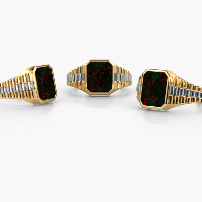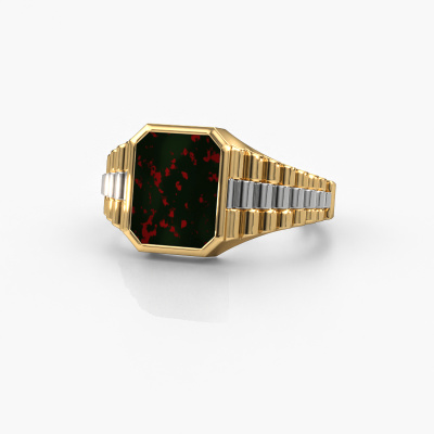 Everyone knows the design of this well-known watch brand. With two colors of gold links, this rectangular 14 Carat gold Brent 1 signet ring, is perfectly suited for trendy, successful men. A man who wants to dress to impress with a striking signet ring with 10x8 mm bloodstone. Show them what you are made of!Customize your own royal Brent 1 signet ring, which will then be created by our goldsmiths with great passion. Do you prefer a different option than is shown here in the gold Brent 1 signet ring? Then our online tools offers various options. Feel free to ask us for help if you are unable to succeed. We are happy to answer your questions!New jewelry designs are added to our online collection daily. Our team of passionate designers strive to create extraordinary and diverse designs. Have you seen a ring you like? Please feel free to contact us. Based on a good price/ quality ratio, we will make you an offer you can't refuse!By using our modern techniques, we can design and customize the finest quality jewels with the utmost care for you. Our rings are always priced 30 percent lower than other jewelers. We make rings to order, so we don't have to maintain a large stock. If you have a certain budget, we are more than happy to advice you accordingly.To make it easier for you, we offer a 30 day return policy. Check our terms and conditions.