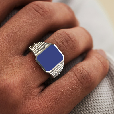 Everyone knows the design of this well-known watch brand. With two colors of platinum links, this flat platinum Brent 2 signet ring, is perfectly suited for trendy, successful men. A man who wants to dress to impress with a striking signet ring with 12x10 mm blue enamel. Show them what you are made of!Customize your own special Brent 2 signet ring, which will then be created by our goldsmiths with great passion. Do you prefer a different option than is shown here in the platinum Brent 2 signet ring? Then our online tools offers various options. Feel free to ask us for help if you are unable to succeed. We are happy to answer your questions!