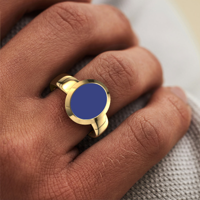 The solid Oscar 3 signet ring with oval shape blue enamel stone top, as shown above, is filled with tradition. Customary, the signet ring was passed down from father to son. Start your own tradition with this solid gold signet ring. We are also more than happy to engrave your ring with a monogram or family crest. Please check our database for further inquiries and options. You can find the departments of our education center at the bottom of this page. Start a new tradition with the contemporary gold Oscar 3 signet ring. How do you like this contemporary gold signet ring? Simply customize this Oscar 3 signet ring, using our online tool. Subsequently, your personal royal Oscar 3 signet ring will be made by hand by our goldsmiths. Precious metals and gemstones can be customized to your liking. Do you have specific preferences which are unavailable in our online tool? Please feel free to contact us. We will customize your personal contemporary signet ring to your liking.Our team of talented, passionate designers add new ring designs to our online collection daily. Our objective in doing so, is to be able to offer you a wide variety of jewels. Please feel free to request a quote if you have specific wishes for your ring. We guarantee to make you an offer you can't refuse.By using a combination of the latest modern techniques, combined with ancient crafting, we can make all our rings in our own studio. Each jewel is made to order. This is advantageous because we can offer you a price you won't find anywhere else.To make it easier for you, we offer a 30 day return policy. Check our terms and conditions.
