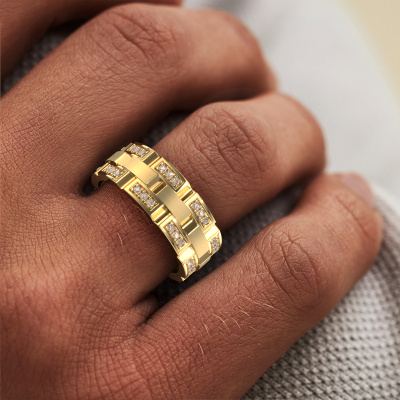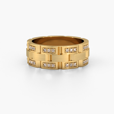 Are you looking for a traditional gold men's ring that is slightly different? Then our solid gold brown diamond set Ricardo 4 men's ring is the perfect ring for you! This ring, as shown here, is made of gold but feel free to customize to your liking. Show them what you are all about with this gold brown diamonds Ricardo 4 men's ring, a ring for ambitious men. The edgy Ricardo 4 men's ring, as shown here, can be customized to your liking. Our online tool offers many different options but please feel free to contact us if you want changes made to your Ricardo 4 men's ring, which are unavailable in our online tool.Our talented designers add new designs to our online collection daily. Together they create a diverse collection of the finest jewelry. If you prefer to make a ring according your own design, please feel free to request a quote. We will make you an amazing offer, based on quality and price.After receiving your order, our goldsmiths will passionately start the creative process of making your ring in our own studio. Because we don't have a big stockpile, these costs will not be passed on to you. Our pricing is proof of that! We offer top quality jewels at lowest price, guaranteed.To make it easier for you, we offer a 30 day return policy. Check our terms and conditions.