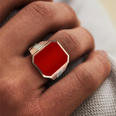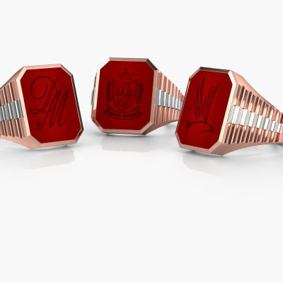 Everyone knows the design of this well-known watch brand. With two colors of rose gold links, this 2 Colors 14 Carat rose gold Brent 4 signet ring, is perfectly suited for trendy, successful men. A man who wants to dress to impress with a striking signet ring with 16x13 mm carnelian. Show them what you are made of!Customize your own luxury Brent 4 signet ring, which will then be created by our goldsmiths with great passion. Do you prefer a different option than is shown here in the rose gold Brent 4 signet ring? Then our online tools offers various options. Feel free to ask us for help if you are unable to succeed. We are happy to answer your questions!Our team of talented, passionate designers add new ring designs to our online collection daily. Our objective in doing so, is to be able to offer you a wide variety of jewels. Please feel free to request a quote if you have specific wishes for your ring. We guarantee to make you an offer you can't refuse.Are you on a budget? Please feel free to contact us, so we can go discuss your options. We offer our rings at guaranteed best price, because we make them to order. You won't find such a price anywhere else!To make it easier for you, we offer a 30 day return policy. Check our terms and conditions.