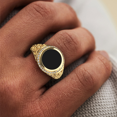 Dress to impress with this round Moor 2 signet ring, because with the right ring you make a strong personal statement. This Moor 2 daring signet ring is shown in 14 Carat gold. If this doesn't suit your style, feel free to customize the precious metal to your liking. After all, you want a signet ring that matches your style. A ring that truly suits you. One saying: This is who I am!How do you like this contemporary gold signet ring? Simply customize this Moor 2 signet ring, using our online tool. Subsequently, your personal daring Moor 2 signet ring will be made by hand by our goldsmiths. Precious metals and gemstones can be customized to your liking. Do you have specific preferences which are unavailable in our online tool? Please feel free to contact us. We will customize your personal contemporary signet ring to your liking.Our team of talented, passionate designers add new ring designs to our online collection daily. Our objective in doing so, is to be able to offer you a wide variety of jewels. Please feel free to request a quote if you have specific wishes for your ring. We guarantee to make you an offer you can't refuse.By using a combination of the latest modern techniques, combined with ancient crafting, we can make all our rings in our own studio. Each jewel is made to order. This is advantageous because we can offer you a price you won't find anywhere else.To make it easier for you, we offer a 30 day return policy. Check our terms and conditions.