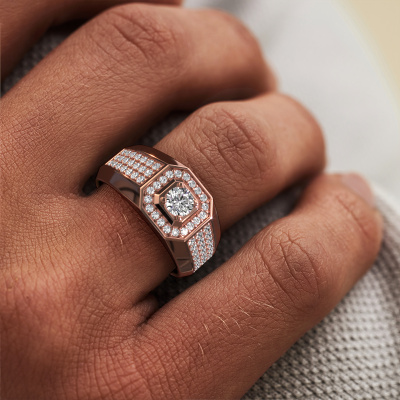 Are you looking for a modern rose gold men's ring that is slightly different? Then our wide rose gold diamond set Pavan men's ring is the perfect ring for you! This ring, as shown here, is made of rose gold but feel free to customize to your liking. Show them what you are all about with this rose gold diamonds Pavan men's ring, a ring for ambitious men. The royal Pavan men's ring, as shown here, can be customized to your liking. Our online tool offers many different options but please feel free to contact us if you want changes made to your Pavan men's ring, which are unavailable in our online tool.