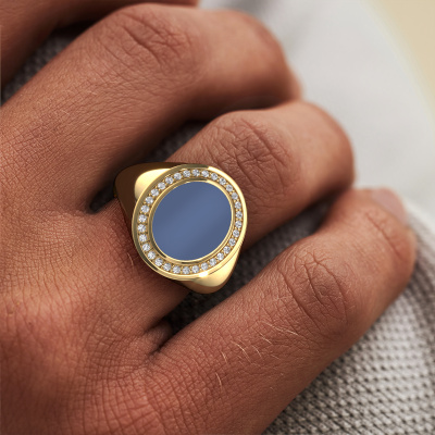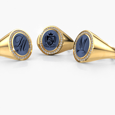 The oval Adam 2 signet ring with oval shape blue sardonyx stone top, as shown above, is filled with tradition. Customary, the signet ring was passed down from father to son. Start your own tradition with this oval gold signet ring. We are also more than happy to engrave your ring with a monogram or family crest. Please check our database for further inquiries and options. You can find the departments of our education center at the bottom of this page. Start a new tradition with the exclusive gold Adam 2 signet ring. The diamonds Adam 2 signet ring, as shown here, can be customized to your liking. Our online tool offers many different options but please feel free to contact us if you want changes made to your Adam 2 signet ring, which are unavailable in our online tool.Our talented designers add new designs to our online collection daily. Together they create a diverse collection of the finest jewelry. If you prefer to make a ring according your own design, please feel free to request a quote. We will make you an amazing offer, based on quality and price.After receiving your order, our goldsmiths will start the creative process of making your Adam 2 ring. We don't keep stock. This is advantageous because these costs will not be passed on to you. Therefore, we can offer jewelry at exceptionally low prices.To make it easier for you, we offer a 30 day return policy. Check our terms and conditions.