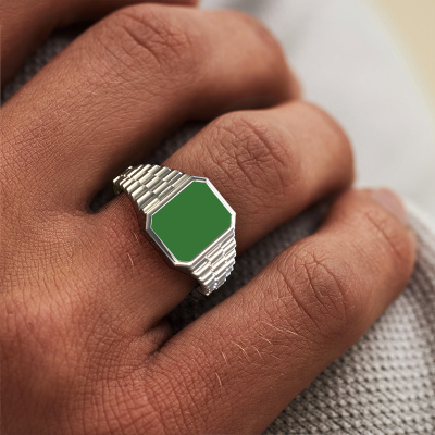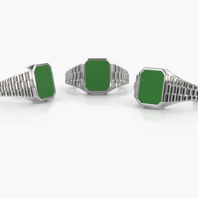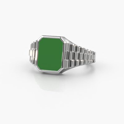 Everyone knows the design of this well-known watch brand. With two colors of white gold links, this rectangular 14 Carat white gold Brent 1 signet ring, is perfectly suited for trendy, successful men. A man who wants to dress to impress with a striking signet ring with 10x8 mm green enamel. Show them what you are made of!Customize your own royal Brent 1 signet ring, which will then be created by our goldsmiths with great passion. Do you prefer a different option than is shown here in the white gold Brent 1 signet ring? Then our online tools offers various options. Feel free to ask us for help if you are unable to succeed. We are happy to answer your questions!New jewelry designs are added to our online collection daily. Our team of passionate designers strive to create extraordinary and diverse designs. Have you seen a ring you like? Please feel free to contact us. Based on a good price/ quality ratio, we will make you an offer you can't refuse!By using our modern techniques, we can design and customize the finest quality jewels with the utmost care for you. Our rings are always priced 30 percent lower than other jewelers. We make rings to order, so we don't have to maintain a large stock. If you have a certain budget, we are more than happy to advice you accordingly.To make it easier for you, we offer a 30 day return policy. Check our terms and conditions.