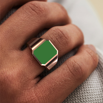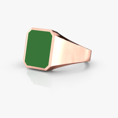 The rectangular Lars 2 signet ring with octagon green enamel stone top, as shown above, is filled with tradition. Customary, the signet ring was passed down from father to son. Start your own tradition with this rectangular rose gold signet ring. We are also more than happy to engrave your ring with a monogram or family crest. Please check our database for further inquiries and options. You can find the departments of our education center at the bottom of this page. Start a new tradition with the traditional rose gold Lars 2 signet ring. The affordable Lars 2 signet ring, as shown here, can be customized to your liking. Our online tool offers many different options but please feel free to contact us if you want changes made to your Lars 2 signet ring, which are unavailable in our online tool.Our team of talented, passionate designers add new ring designs to our online collection daily. Our objective in doing so, is to be able to offer you a wide variety of jewels. Please feel free to request a quote if you have specific wishes for your ring. We guarantee to make you an offer you can't refuse.By using our modern techniques, we can design and customize the finest quality jewels with the utmost care for you. Our rings are always priced 30 percent lower than other jewelers. We make rings to order, so we don't have to maintain a large stock. If you have a certain budget, we are more than happy to advice you accordingly.To make it easier for you, we offer a 30 day return policy. Check our terms and conditions.