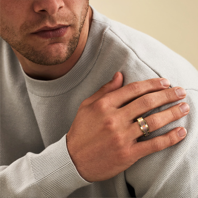 Dress to impress with this 2 Colors Guido men's ring, because with the right ring you make a strong personal statement. This Guido edgy men's ring is shown in 14 Carat rose gold. If this doesn't suit your style, feel free to customize the precious metal to your liking. After all, you want a men's ring that matches your style. A ring that truly suits you. One saying: This is who I am!As soon as you finished designing your Guido men's ring with our online tool, our goldsmiths will start their creative process of making your ring. This will be done with passion and care, according ancient crafting. On top of that, our jewels are made of eco-friendly materials. Simply customize online with our online tool, if you want any changes made. If you want specific changes made to your Guido men's ring, that are unavailable in our online tool, please feel free to contact our expert designers.Our team of talented, passionate designers add new ring designs to our online collection daily. Our objective in doing so, is to be able to offer you a wide variety of jewels. Please feel free to request a quote if you have specific wishes for your ring. We guarantee to make you an offer you can't refuse.Because we design and deliver our own rings, we can offer you a ring at a price you won't find anywhere else. A ring is made to order, which helps prevent excess supplies, so we can make you a great price offer. We understand it feels risky, buying your ring online, but we will gladly assist in the designing process, taking your budget into consideration.To make it easier for you, we offer a 30 day return policy. Check our terms and conditions.