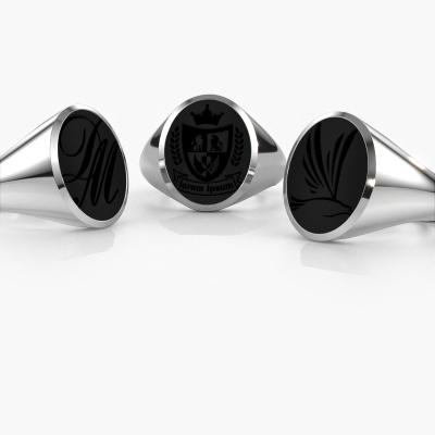The heavy Herman 6 signet ring with oval shape onyx stone top, as shown above, is filled with tradition. Customary, the signet ring was passed down from father to son. Start your own tradition with this heavy platinum signet ring. We are also more than happy to engrave your ring with a monogram or family crest. Please check our database for further inquiries and options. You can find the departments of our education center at the bottom of this page. Start a new tradition with the modern platinum Herman 6 signet ring. How do you like this modern platinum signet ring? Simply customize this Herman 6 signet ring, using our online tool. Subsequently, your personal cool Herman 6 signet ring will be made by hand by our goldsmiths. Precious metals and gemstones can be customized to your liking. Do you have specific preferences which are unavailable in our online tool? Please feel free to contact us. We will customize your personal modern signet ring to your liking.Our team of talented, passionate designers add new ring designs to our online collection daily. Our objective in doing so, is to be able to offer you a wide variety of jewels. Please feel free to request a quote if you have specific wishes for your ring. We guarantee to make you an offer you can't refuse.Because we design and deliver our own rings, we can offer you a ring at a price you won't find anywhere else. A ring is made to order, which helps prevent excess supplies, so we can make you a great price offer. We understand it feels risky, buying your ring online, but we will gladly assist in the designing process, taking your budget into consideration.To make it easier for you, we offer a 30 day return policy. Check our terms and conditions.