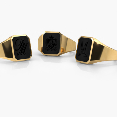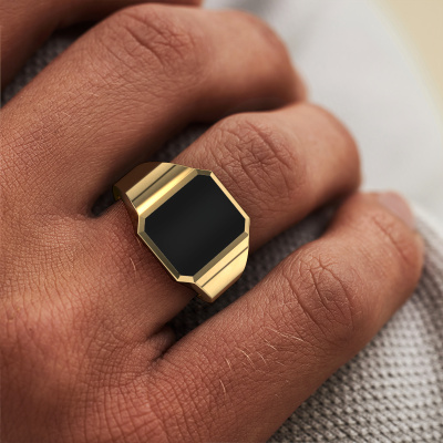 The rectangular Lars 2 signet ring with octagon onyx stone top, as shown above, is filled with tradition. Customary, the signet ring was passed down from father to son. Start your own tradition with this rectangular gold signet ring. We are also more than happy to engrave your ring with a monogram or family crest. Please check our database for further inquiries and options. You can find the departments of our education center at the bottom of this page. Start a new tradition with the traditional gold Lars 2 signet ring. The affordable Lars 2 signet ring, as shown here, can be customized to your liking. Our online tool offers many different options but please feel free to contact us if you want changes made to your Lars 2 signet ring, which are unavailable in our online tool.Our team of talented, passionate designers add new ring designs to our online collection daily. Our objective in doing so, is to be able to offer you a wide variety of jewels. Please feel free to request a quote if you have specific wishes for your ring. We guarantee to make you an offer you can't refuse.By using our modern techniques, we can design and customize the finest quality jewels with the utmost care for you. Our rings are always priced 30 percent lower than other jewelers. We make rings to order, so we don't have to maintain a large stock. If you have a certain budget, we are more than happy to advice you accordingly.To make it easier for you, we offer a 30 day return policy. Check our terms and conditions.