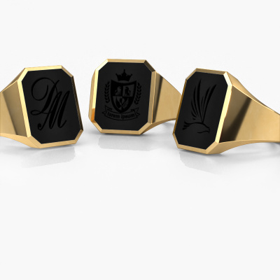The solid Lars 5 signet ring with octagon onyx stone top, as shown above, is filled with tradition. Customary, the signet ring was passed down from father to son. Start your own tradition with this solid gold signet ring. We are also more than happy to engrave your ring with a monogram or family crest. Please check our database for further inquiries and options. You can find the departments of our education center at the bottom of this page. Start a new tradition with the chic gold Lars 5 signet ring. The luxury Lars 5 signet ring, as shown here, can be customized to your liking. Our online tool offers many different options but please feel free to contact us if you want changes made to your Lars 5 signet ring, which are unavailable in our online tool.New jewelry designs are added to our online collection daily. Our team of passionate designers strive to create extraordinary and diverse designs. Have you seen a ring you like? Please feel free to contact us. Based on a good price/ quality ratio, we will make you an offer you can't refuse!Because we design and deliver our own rings, we can offer you a ring at a price you won't find anywhere else. A ring is made to order, which helps prevent excess supplies, so we can make you a great price offer. We understand it feels risky, buying your ring online, but we will gladly assist in the designing process, taking your budget into consideration.To make it easier for you, we offer a 30 day return policy. Check our terms and conditions.