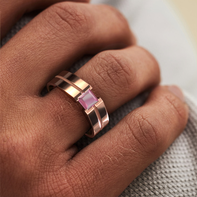 Are you looking for a modern rose gold men's ring that is slightly different? Then our flat rose gold pink sapphire set Stefan men's ring is the perfect ring for you! This ring, as shown here, is made of rose gold but feel free to customize to your liking. Show them what you are all about with this rose gold pink sapphire Stefan men's ring, a ring for ambitious men. Our goldsmiths passionately create your customized men's ring to your liking with the utmost care. The rose gold men's ring, as shown here, can be customized using our online tool. Feel free to ask our jewel designers for assistance if you want changes made which are unavailable in our online tool. We are happy to answer your questions.Our team of talented, passionate designers add new ring designs to our online collection daily. Our objective in doing so, is to be able to offer you a wide variety of jewels. Please feel free to request a quote if you have specific wishes for your ring. We guarantee to make you an offer you can't refuse.By using a combination of the latest modern techniques, combined with ancient crafting, we can make all our rings in our own studio. Each jewel is made to order. This is advantageous because we can offer you a price you won't find anywhere else.To make it easier for you, we offer a 30 day return policy. Check our terms and conditions.