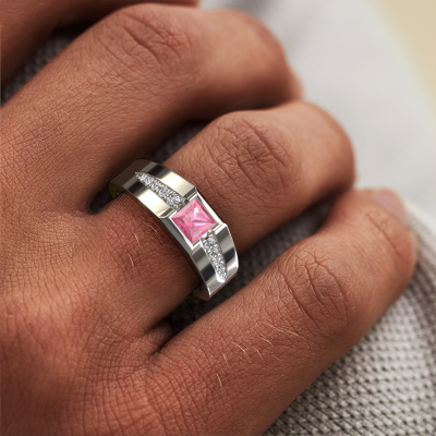 Are you looking for a modern platinum pinky ring that is slightly different? Then our square platinum pink sapphire set Simon pinky ring is the perfect ring for you! This ring, as shown here, is made of platinum but feel free to customize to your liking. Show them what you are all about with this platinum pink sapphire Simon pinky ring, a ring for ambitious men. How do you like this modern platinum men's ring? Simply customize this Simon men's ring, using our online tool. Subsequently, your personal luxury Simon men's ring will be made by hand by our goldsmiths. Precious metals and gemstones can be customized to your liking. Do you have specific preferences which are unavailable in our online tool? Please feel free to contact us. We will customize your personal modern men's ring to your liking.Our talented designers add new designs to our online collection daily. Together they create a diverse collection of the finest jewelry. If you prefer to make a ring according your own design, please feel free to request a quote. We will make you an amazing offer, based on quality and price.By using a combination of the latest modern techniques, combined with ancient crafting, we can make all our rings in our own studio. Each jewel is made to order. This is advantageous because we can offer you a price you won't find anywhere else.To make it easier for you, we offer a 30 day return policy. Check our terms and conditions.