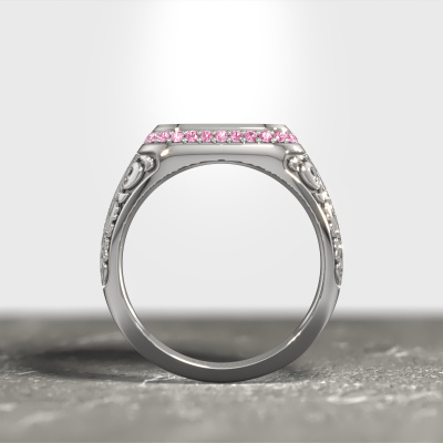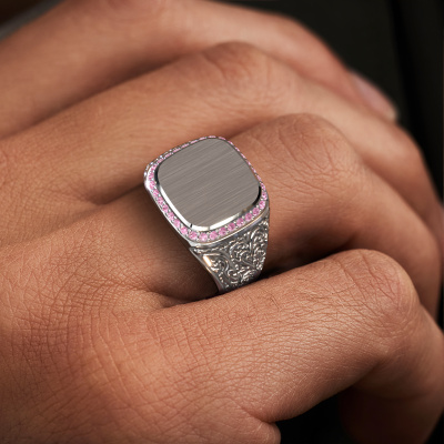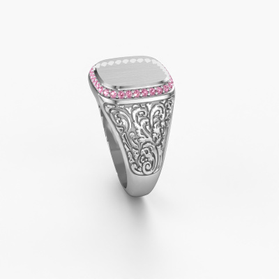 Dress to impress with this heavy Jesse 2 men's ring, because with the right ring you make a strong personal statement. This Jesse 2 special men's ring is shown in platinum. If this doesn't suit your style, feel free to customize the precious metal to your liking. After all, you want a men's ring that matches your style. A ring that truly suits you. One saying: This is who I am!The best part of this special signet ring is that you can customize it to your own liking. Your style, your choice, your signet ring. On top of that, your vintage platinum signet ring will be made by hand with eco-friendly materials! Please feel free to easily customize the ring, using our online tool. Of course, you can always contact us. We will gladly help you compiling your vintage signet ring. Is there a design you like, but you would like to customize it with a gemstone we do not offer on our website, then please contact us. We're happy to tell you about the possibilities.