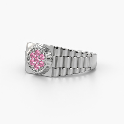 Everyone knows the design of this well-known watch brand. With two colors of platinum links, this solid platinum Nout men's ring, is perfectly suited for trendy, successful men. A man who wants to dress to impress with a striking men's ring with 2 mm pink sapphire. Show them what you are made of!Our goldsmiths passionately create your customized men's ring to your liking with the utmost care. The platinum men's ring, as shown here, can be customized using our online tool. Feel free to ask our jewel designers for assistance if you want changes made which are unavailable in our online tool. We are happy to answer your questions.New jewelry designs are added to our online collection daily. Our team of passionate designers strive to create extraordinary and diverse designs. Have you seen a ring you like? Please feel free to contact us. Based on a good price/ quality ratio, we will make you an offer you can't refuse!By using our modern techniques, we can design and customize the finest quality jewels with the utmost care for you. Our rings are always priced 30 percent lower than other jewelers. We make rings to order, so we don't have to maintain a large stock. If you have a certain budget, we are more than happy to advice you accordingly.To make it easier for you, we offer a 30 day return policy. Check our terms and conditions.