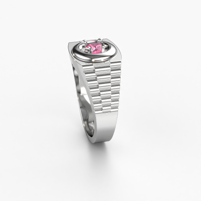 Everyone knows the design of this well-known watch brand. With two colors of white gold links, this solid 14 Carat white gold Edward men's ring, is perfectly suited for trendy, successful men. A man who wants to dress to impress with a striking men's ring with 4.7 mm pink sapphire. Show them what you are made of!How do you like this exclusive white gold men's ring? Simply customize this Edward men's ring, using our online tool. Subsequently, your personal daring Edward men's ring will be made by hand by our goldsmiths. Precious metals and gemstones can be customized to your liking. Do you have specific preferences which are unavailable in our online tool? Please feel free to contact us. We will customize your personal exclusive men's ring to your liking.Our talented designers add new designs to our online collection daily. Together they create a diverse collection of the finest jewelry. If you prefer to make a ring according your own design, please feel free to request a quote. We will make you an amazing offer, based on quality and price.Because we design and deliver our own rings, we can offer you a ring at a price you won't find anywhere else. A ring is made to order, which helps prevent excess supplies, so we can make you a great price offer. We understand it feels risky, buying your ring online, but we will gladly assist in the designing process, taking your budget into consideration.To make it easier for you, we offer a 30 day return policy. Check our terms and conditions.