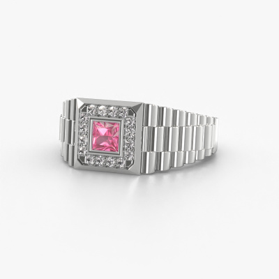 Everyone knows the design of this well-known watch brand. With two colors of white gold links, this solid 14 Carat white gold Zilan men's ring, is perfectly suited for trendy, successful men. A man who wants to dress to impress with a striking men's ring with 4 mm pink sapphire. Show them what you are made of!Customize your own special Zilan men's ring, which will then be created by our goldsmiths with great passion. Do you prefer a different option than is shown here in the white gold Zilan men's ring? Then our online tools offers various options. Feel free to ask us for help if you are unable to succeed. We are happy to answer your questions!Our team of talented, passionate designers add new ring designs to our online collection daily. Our objective in doing so, is to be able to offer you a wide variety of jewels. Please feel free to request a quote if you have specific wishes for your ring. We guarantee to make you an offer you can't refuse.After receiving your order, our goldsmiths will start the creative process of making your Zilan ring. We don't keep stock. This is advantageous because these costs will not be passed on to you. Therefore, we can offer jewelry at exceptionally low prices.To make it easier for you, we offer a 30 day return policy. Check our terms and conditions.