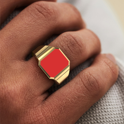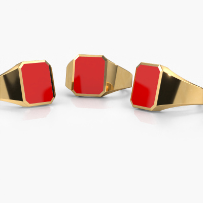 The rectangular Lars 2 signet ring with octagon red enamel stone top, as shown above, is filled with tradition. Customary, the signet ring was passed down from father to son. Start your own tradition with this rectangular gold signet ring. We are also more than happy to engrave your ring with a monogram or family crest. Please check our database for further inquiries and options. You can find the departments of our education center at the bottom of this page. Start a new tradition with the traditional gold Lars 2 signet ring. The affordable Lars 2 signet ring, as shown here, can be customized to your liking. Our online tool offers many different options but please feel free to contact us if you want changes made to your Lars 2 signet ring, which are unavailable in our online tool.Our team of talented, passionate designers add new ring designs to our online collection daily. Our objective in doing so, is to be able to offer you a wide variety of jewels. Please feel free to request a quote if you have specific wishes for your ring. We guarantee to make you an offer you can't refuse.By using our modern techniques, we can design and customize the finest quality jewels with the utmost care for you. Our rings are always priced 30 percent lower than other jewelers. We make rings to order, so we don't have to maintain a large stock. If you have a certain budget, we are more than happy to advice you accordingly.To make it easier for you, we offer a 30 day return policy. Check our terms and conditions.