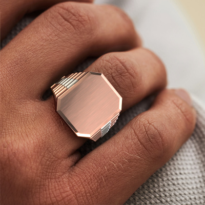 Everyone knows the design of this well-known watch brand. With two colors of rose gold links, this 2 Colors 14 Carat rose gold Erik 4 signet ring, is perfectly suited for trendy, successful men. A man who wants to dress to impress with a striking signet ring. Show them what you are made of!How do you like this traditional rose gold signet ring? Simply customize this Erik 4 signet ring, using our online tool. Subsequently, your personal best prices Erik 4 signet ring will be made by hand by our goldsmiths. Precious metals and gemstones can be customized to your liking. Do you have specific preferences which are unavailable in our online tool? Please feel free to contact us. We will customize your personal traditional signet ring to your liking.Our team of talented, passionate designers add new ring designs to our online collection daily. Our objective in doing so, is to be able to offer you a wide variety of jewels. Please feel free to request a quote if you have specific wishes for your ring. We guarantee to make you an offer you can't refuse.After receiving your order, our goldsmiths will start the creative process of making your Erik 4 ring. We don't keep stock. This is advantageous because these costs will not be passed on to you. Therefore, we can offer jewelry at exceptionally low prices.To make it easier for you, we offer a 30 day return policy. Check our terms and conditions.