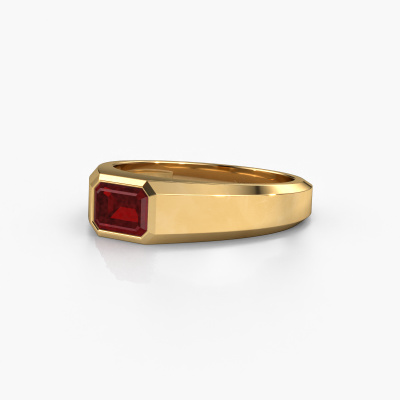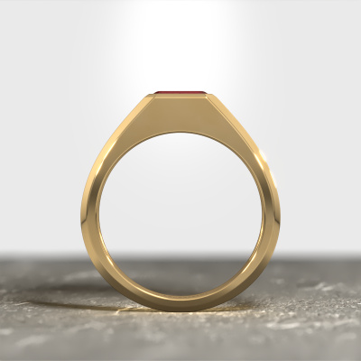 Are you looking for a exclusive gold men's ring that is slightly different? Then our rectangular gold ruby set Dylan 1 men's ring is the perfect ring for you! This ring, as shown here, is made of gold but feel free to customize to your liking. Show them what you are all about with this gold ruby Dylan 1 men's ring, a ring for ambitious men. Our goldsmiths passionately create your customized men's ring to your liking with the utmost care. The gold men's ring, as shown here, can be customized using our online tool. Feel free to ask our jewel designers for assistance if you want changes made which are unavailable in our online tool. We are happy to answer your questions.Our team of talented, passionate designers add new ring designs to our online collection daily. Our objective in doing so, is to be able to offer you a wide variety of jewels. Please feel free to request a quote if you have specific wishes for your ring. We guarantee to make you an offer you can't refuse.By using a combination of the latest modern techniques, combined with ancient crafting, we can make all our rings in our own studio. Each jewel is made to order. This is advantageous because we can offer you a price you won't find anywhere else.To make it easier for you, we offer a 30 day return policy. Check our terms and conditions.